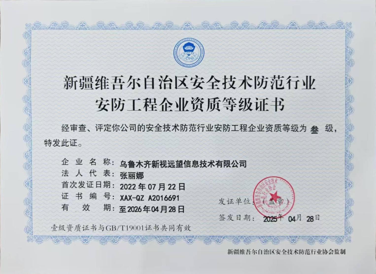 安防工程企業資質等級證書
